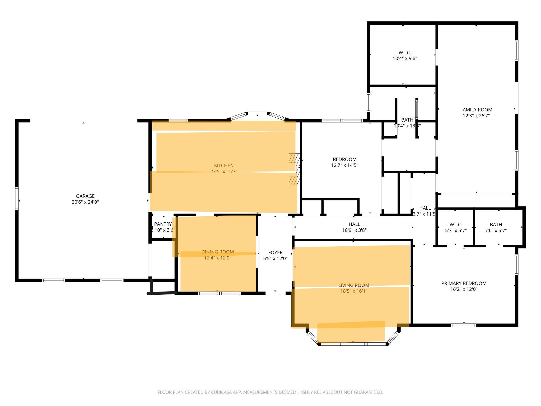 The common areas of the house include kitchen, living room and dining room, as highlighted on the floorplan on the left.
